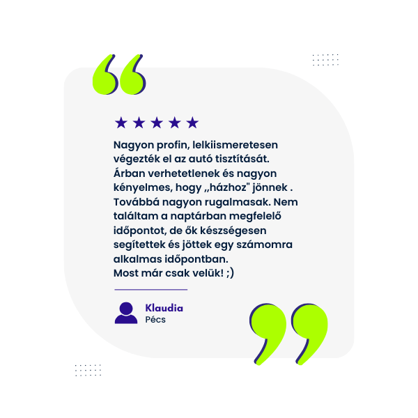 Parkolóban, otthon vagy munkahelyeden is elvégezzük a tisztítást, miközben te a saját dolgaiddal foglalkozhatsz.